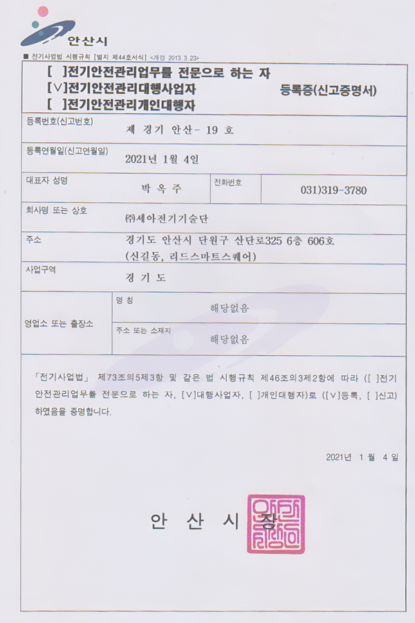 주소 : 안산시 단원구 산단로 325 안산스마트스퀘어 지식산업센터 F606호 전화 : 031-319-3780